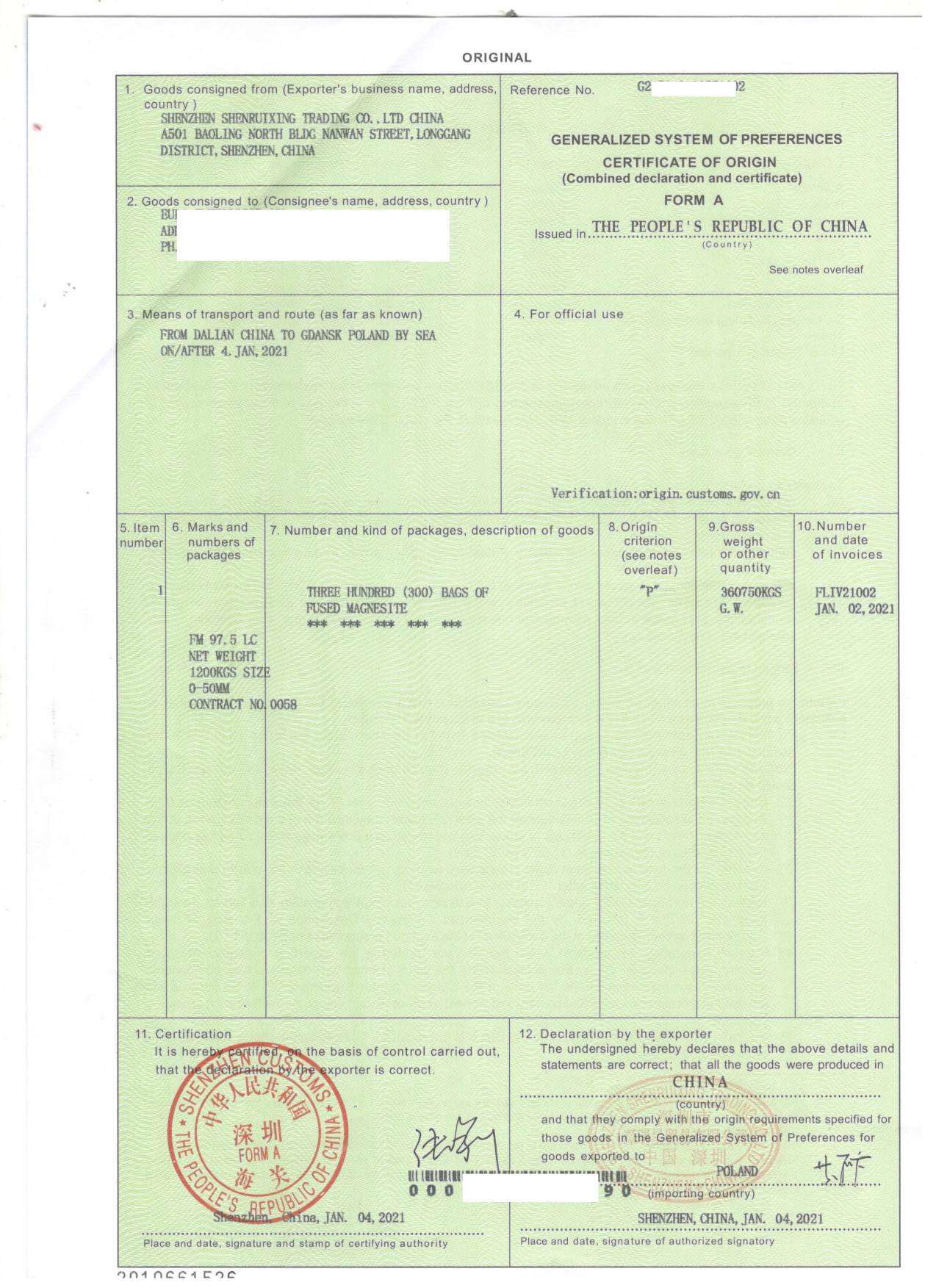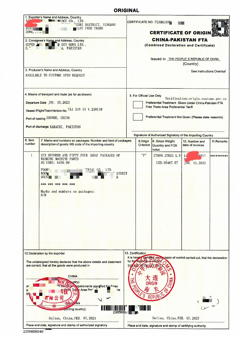 中巴產(chǎn)地證FTA,中國(guó)-巴基斯坦產(chǎn)地證FORM P