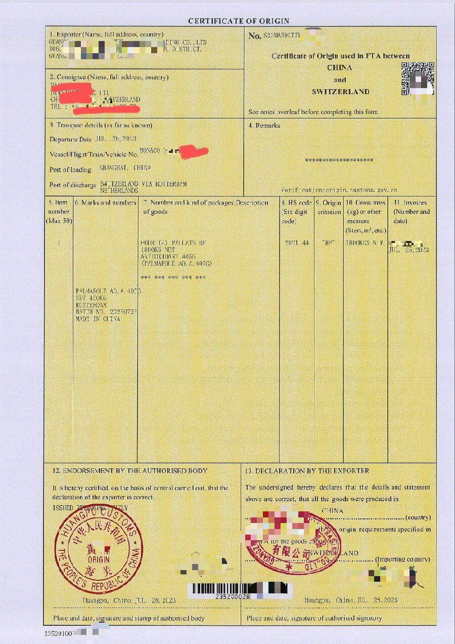 中瑞優(yōu)惠原產(chǎn)地FORM S