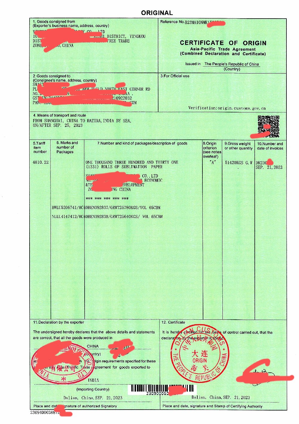 中巴產(chǎn)地證FTA,中國-巴基斯坦產(chǎn)地證FORM P