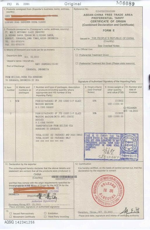 中國東盟自由貿(mào)易區(qū)原產(chǎn)地證-Form E